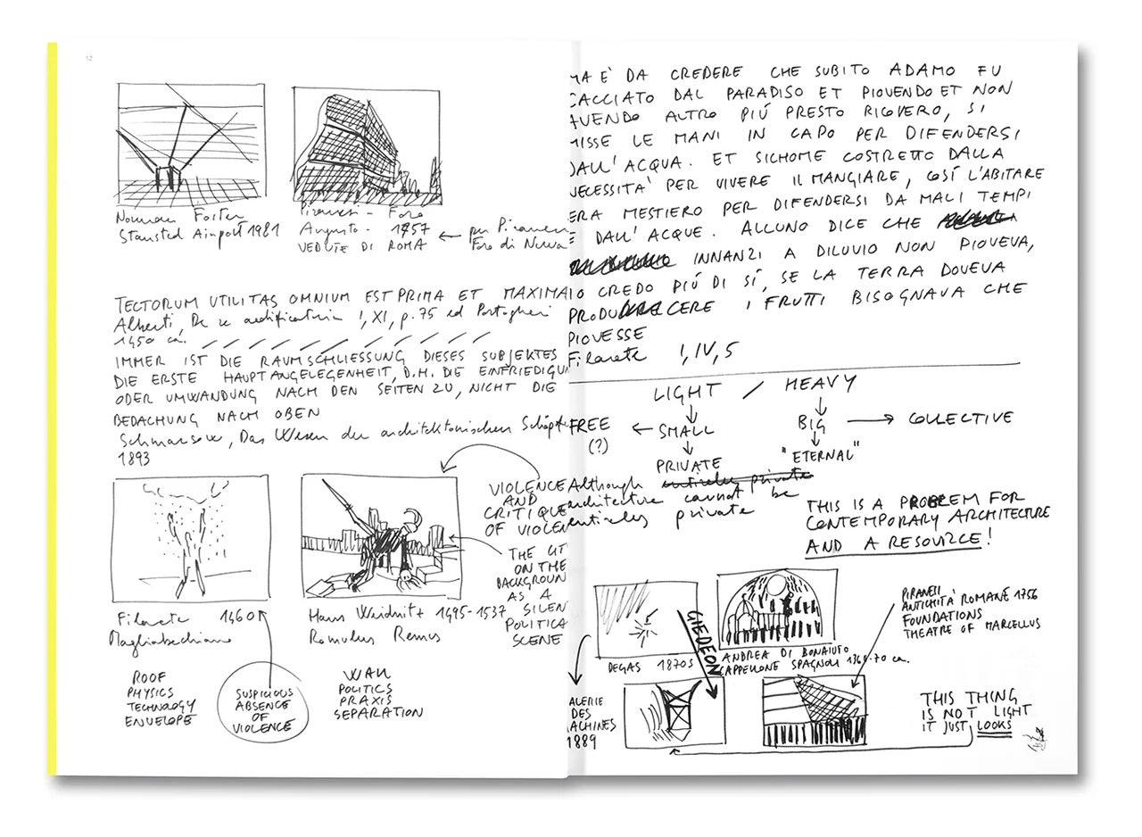 Tamburelli’s lessons are based around a series of dialectic couples, including Roof/Wall, Shelter/Memory, and Language/Action. The pairs are experimental and often provocative, offering a framework to be used to climb in the direction of architecture. Tamburelli trusts in the capacity of images to suspend the restraints of more rigorous theoretical approaches, embraces the flexible wisdom of the note, and relishes the intrigue of the cryptic messages we leave for ourselves. Reproduced here in their entirety, these eight lessons offer countless routes towards, through, and around architecture, providing newcomers and experts alike with an intimate and refreshing encounter with a millennia-old discipline.